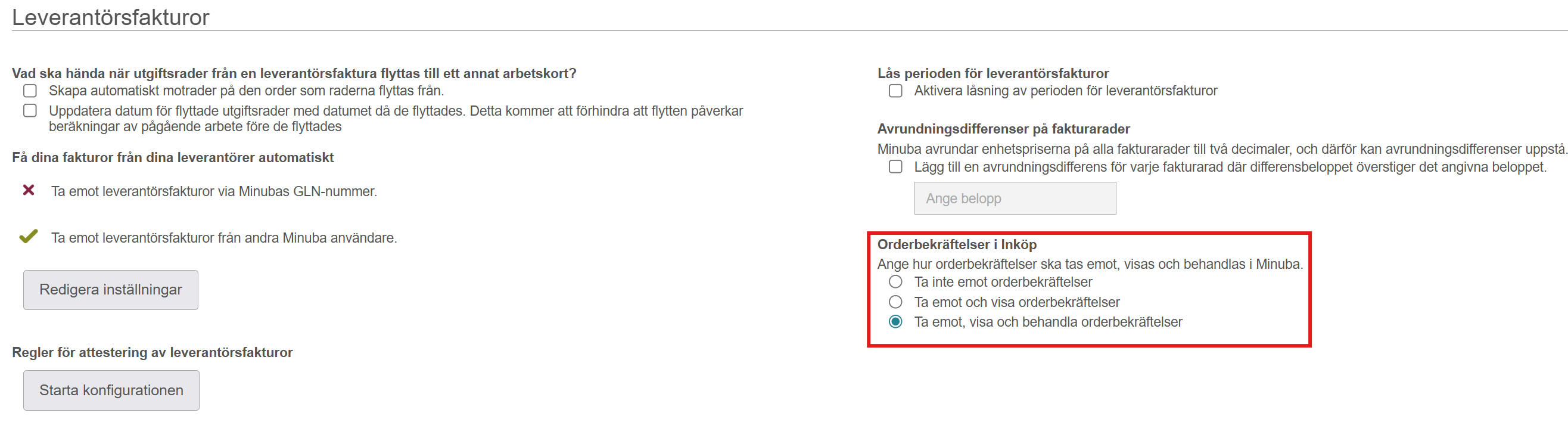 Förutom att välja om du vill ta emot dem, kan du också bestämma om dina medarbetare ska ha möjlighet att hantera dem. Detta kan vara praktiskt, så att du snabbare får en överblick över vad som har beställts till ordern – innan själva inköpsfakturan anländer.