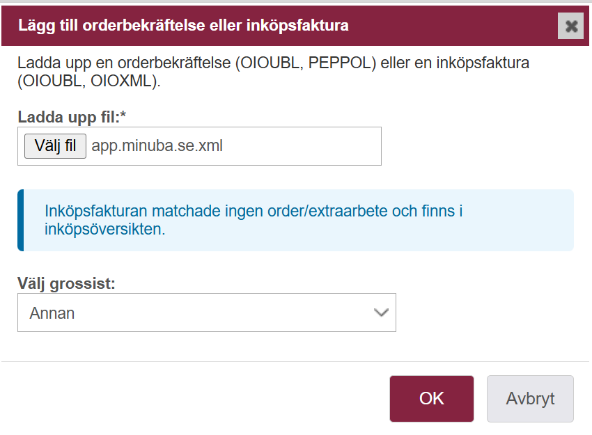 Om du har fått inköpsfakturorna från grossisterna elektroniskt och de är sparade på din dator, kan du lägga till dem under handlingar: