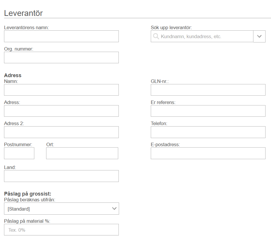 - Påslag för leverantör: Här kan du välja hur påslaget ska beräknas för denna leverantör eller om standardinställningarna ska användas.