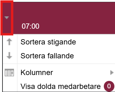Observera! Den sortering du väljer sparas endast på den enhet där den gjordes. Det innebär att om du ändrar ordningen på dina medarbetare på din dator och sedan använder mobilen eller en annan dator, så följer inte dessa ändringar med. Sorteringen visas alltså endast på den enhet där du har valt denna vy.